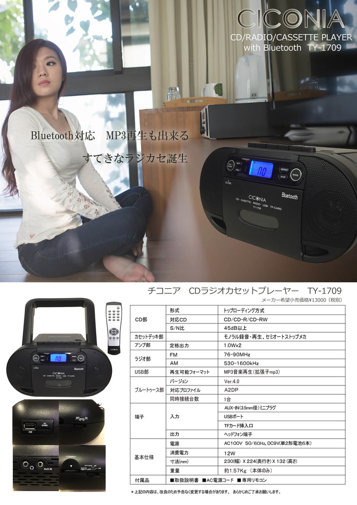 Bluetooth機能が付いたカセットデッキ内蔵のcdラジカセを1月15日新発売 Usbメモリー Tfカードにも対応 株式会社センター商事のプレスリリース