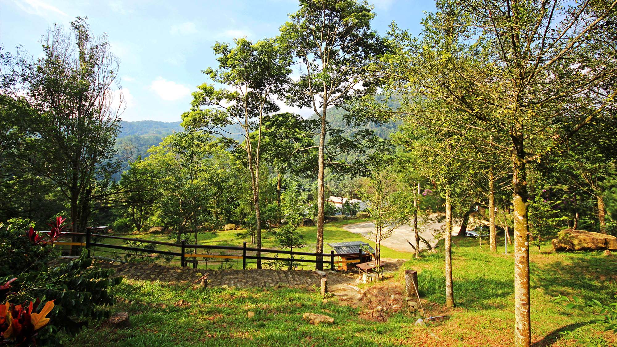 南投仁愛 楓香樹林高大筆直天然芬多精 伴天聊露營區 小型動物園 滑水道戲水池 溜滑梯 釣魚池 釣魚池 可人之家