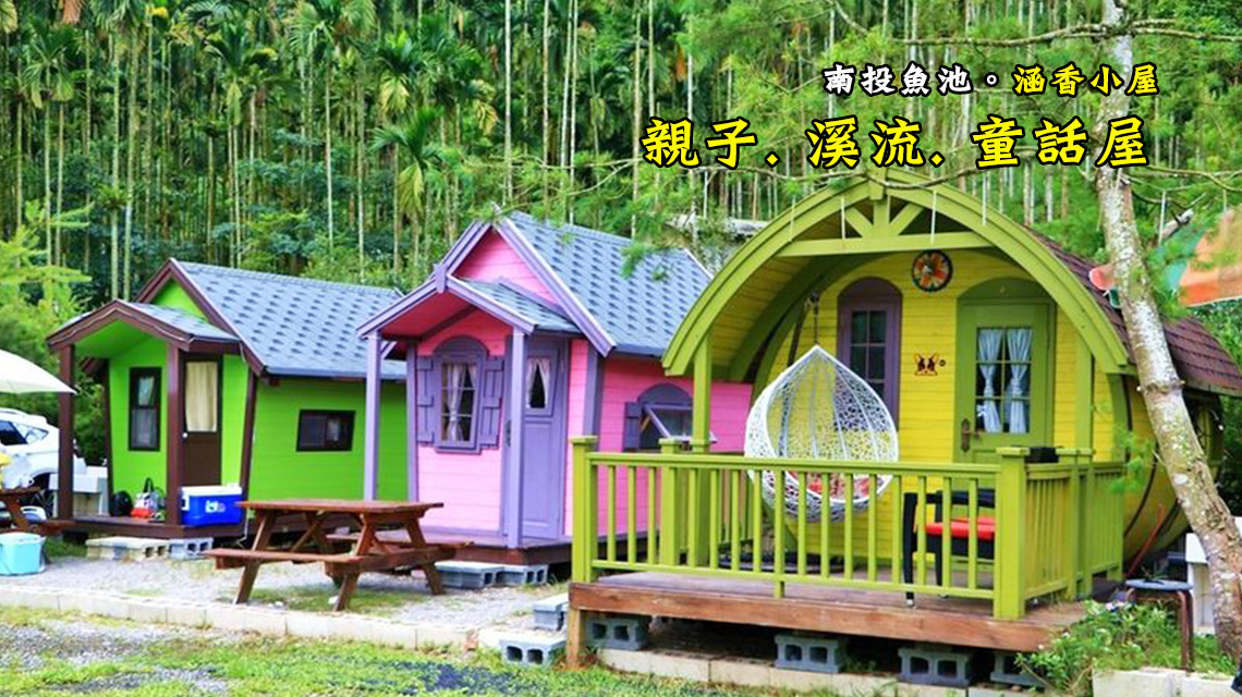 南投魚池 涵香小屋露營驛站 彩色童話故事屋 戲水池 冬天改為溫水 玩沙池 野溪戲水 輕裝備小木屋 民宿區 可人之家