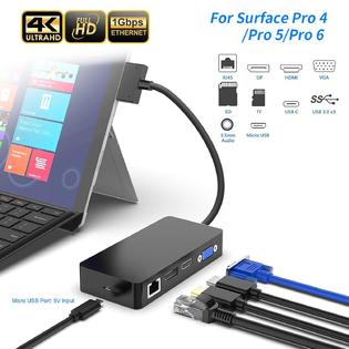 Docking Station Surface Pro 6 Pro 5 Pro 4 Usb Hub With 4k Hdmi Vga Dp Micro Usb Charging 3 Usb 3 0 Port 1000mb S Gigabit Ethernet Usb C Sync Port Sd Tf Card Slot Memory Card Reader