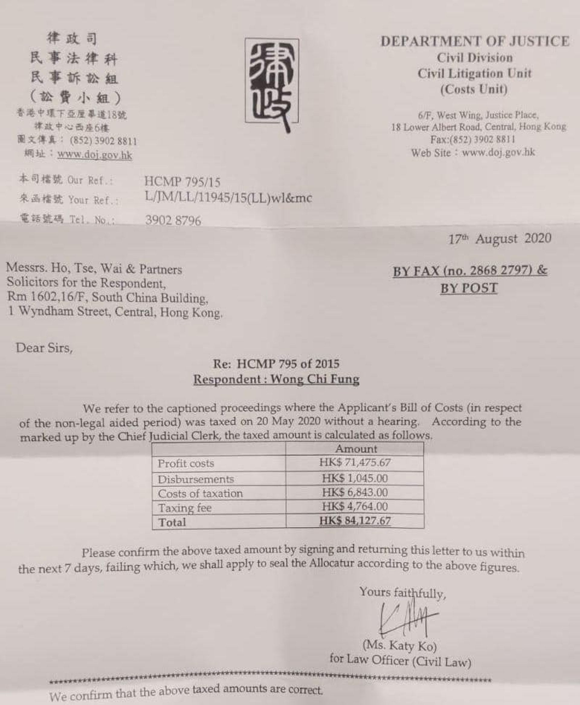 律政司追討6年前法律費用逾8萬元黃之鋒 相當荒謬 香港01 政情
