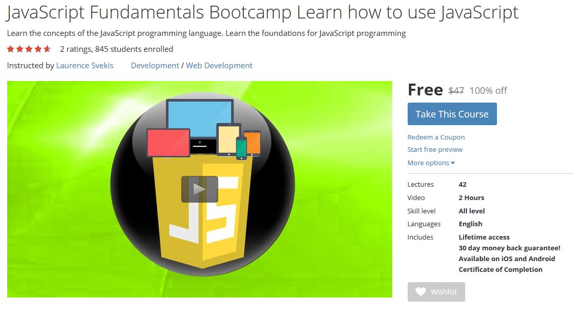 UDEMY JavaScript Fundamentals A Course for Absolute Beginners for FREE. Enrol on this Learn Advanced JavaScript paid Udemy course now free for a limited time Once enrolled, you will get to learn everything you need to know about Advanced JavaScript So, if you had plans to hone your JavaScript skills, then this course is for you. JavaScript is the most popular programming language in the world It powers the entire modern web It provides millions of highpaying jobs all over the world That's why you want to learn JavaScript too And you came to the right place!.