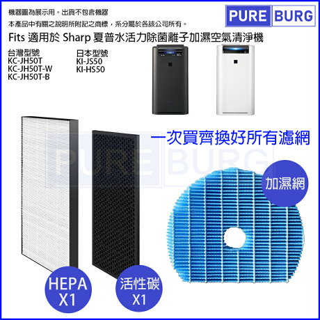 Hepa替換濾芯 活性碳組 加濕網適用 Sharp夏普kc Jh50t W Kc Jh51t W Ki Js50 Ki Hs50水活力空氣清淨機 Pureburg Rakuten樂天市場