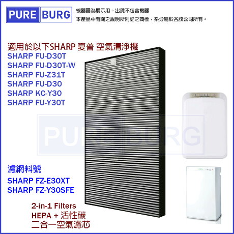 適用sharp夏普hepa含活性碳濾網fu D30t Fu D30t W Fu Z31t Kc Y30 Fu Y30t Fu F30 W空氣清淨機 Pureburg Rakuten樂天市場