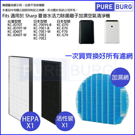 Hepa替換濾芯 活性碳組 水活力加濕網適用sharp夏普kc Jd60t Kc Jd70t Kc D70 Kc E70 Kc F70 Kc G70空氣清淨機 Pureburg Rakuten樂天市場