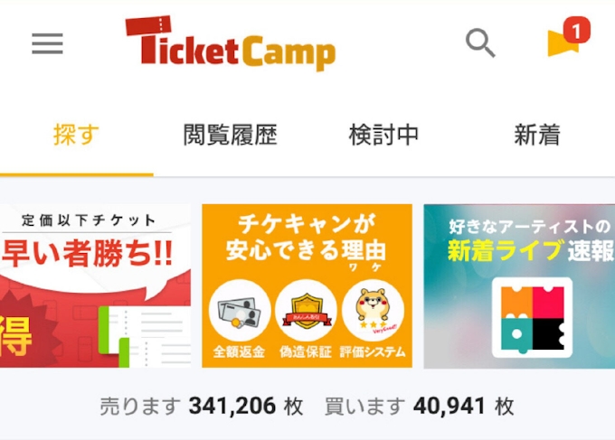 チケットキャンプ あんしん決済で楽々チケット売買 圧倒的な出品数が魅力的なticketcamp App Find