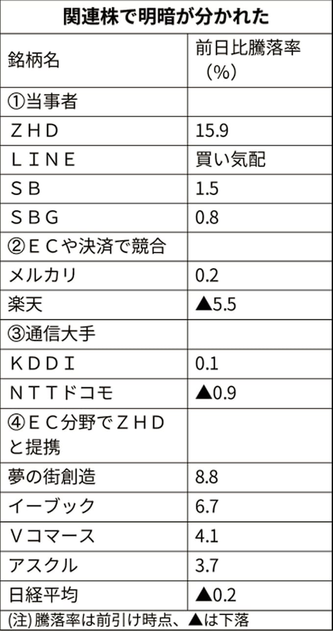 ヤフー Line統合で株価明暗 Zhd 高 楽天6 安 日本経済新聞