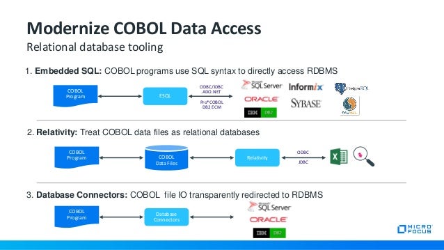 File size limits Operating system limits ;. Micro Focus COBOL sqllib\samples\cobol_mf Note The COBOL samples are not structured in the DB2 level design used for the C, CLI, C, C#, Java, Perl, PHP, Visual Basic ADO, and Visual Basic NET samples. Upgrading from COBOL Workbench to Visual COBOL for Eclipse was much easier than I had anticipated I had expected the need to rework code and was reluctant to make the move However, the risk of continuing to use older technology, as well as the promise of a modern development toolset with mixed language support, convinced us to pursue the upgrade.
