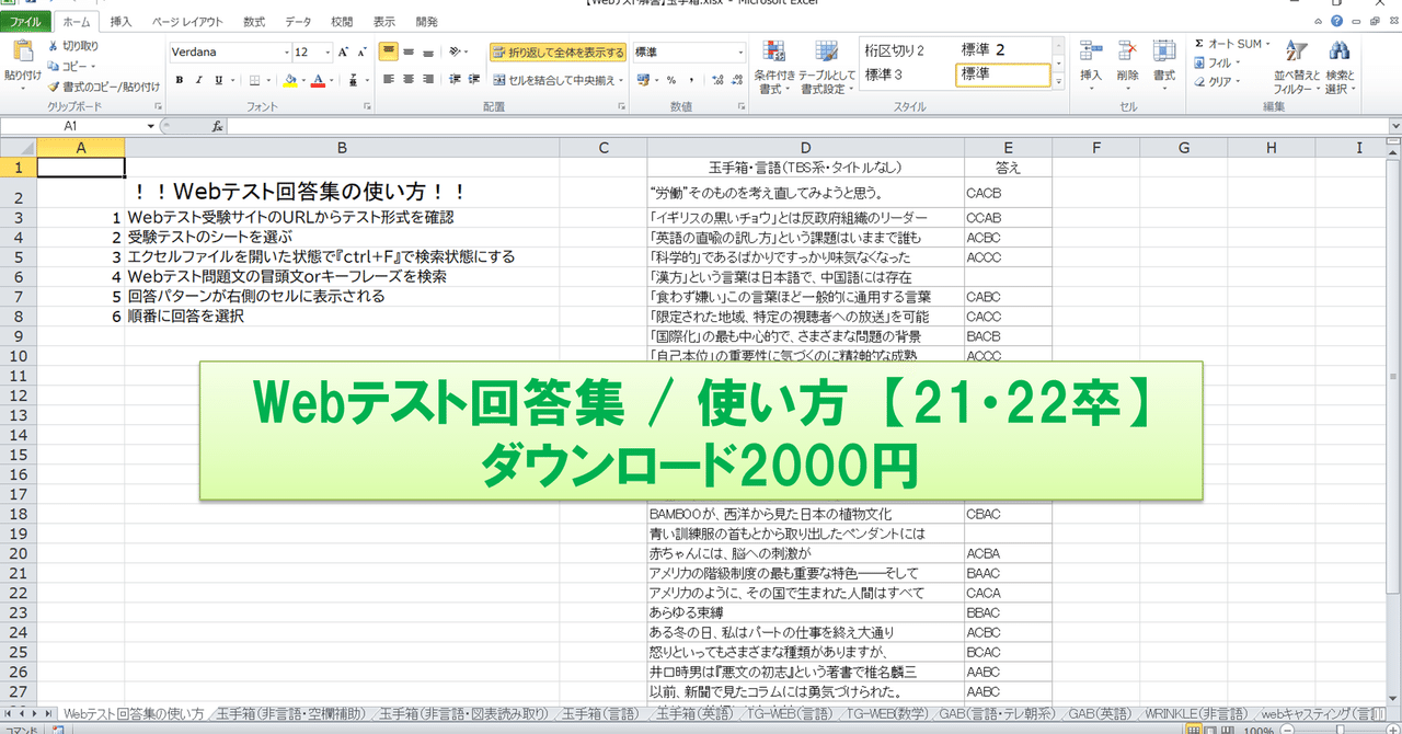 玉手箱 Gabなどwebテスト解答集 ダウンロード00円 22卒向け 効率就活 Note
