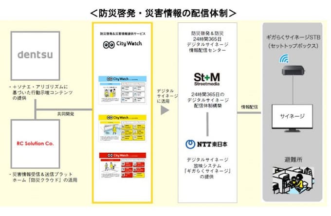 電通など デジタルサイネージ 電子看板 を活用した情報発信事業として24時間365日の防災情報発信体制を構築 日本経済新聞