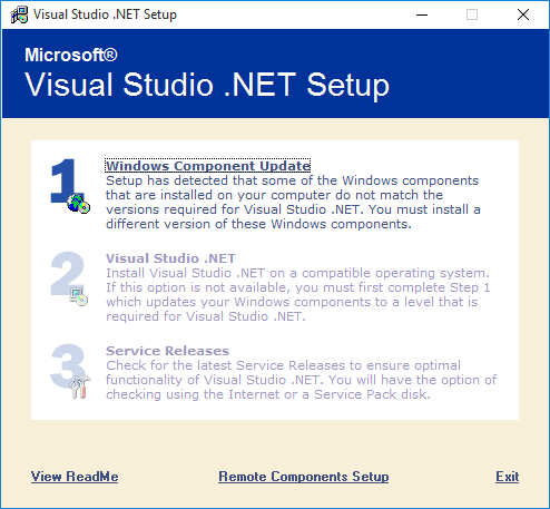 Visual Studio NET 03 Prerequisites Esulin asked on NET Programming;. Anyway, after playing around a bit, if you have the same problem, there is a simple way to make Visual Studio NET 03 run on Windows 7 even without the XP VM Install SP1 and in the Properties of the Visual Studio startup icon on the desktop or in the task bar, select the 'Compatibility' tab and use 'Compatibility mode for Windows Vista SP1'. Visual Studio NET 03 Prerequisites Esulin asked on NET Programming;.