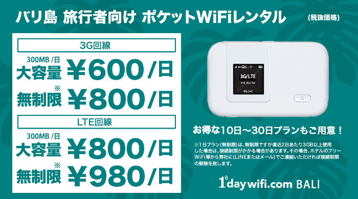 バリ島旅行者向けポケットwifiレンタルサービス 1daywifi Comバリ インターネット大容量 使い放題プラン の提供を開始 1daywifi Comのプレスリリース