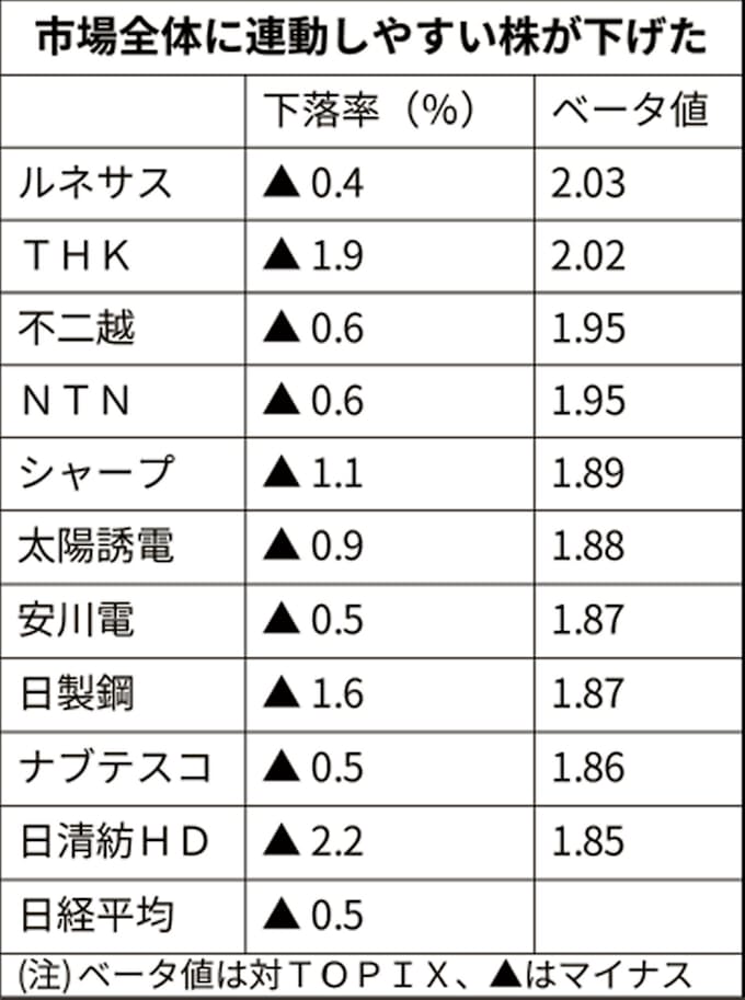 株 下値警戒感強まる 相場連動 株に売り 日本経済新聞