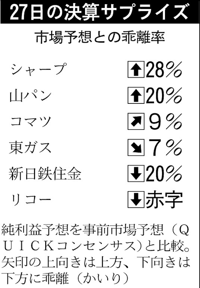 27日の決算サプライズ シャープ 市場予想を上回る 日本経済新聞