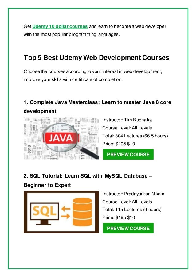 A Udemy certificate may not get you a new employment or promotions but it can enrich your resume Essentially, Udemy can help you in getting a job interview Developing Hobbies – If you want to learn something just as a hobby then this is one of the best platform. Develop your programming skills with beginner to advanced Java training from Oracle University Build the skills to compete for top IT jobs and prove your expertise with Java certification. Udemy and Eduonix are best for practical, low cost and high quality Java courses;.