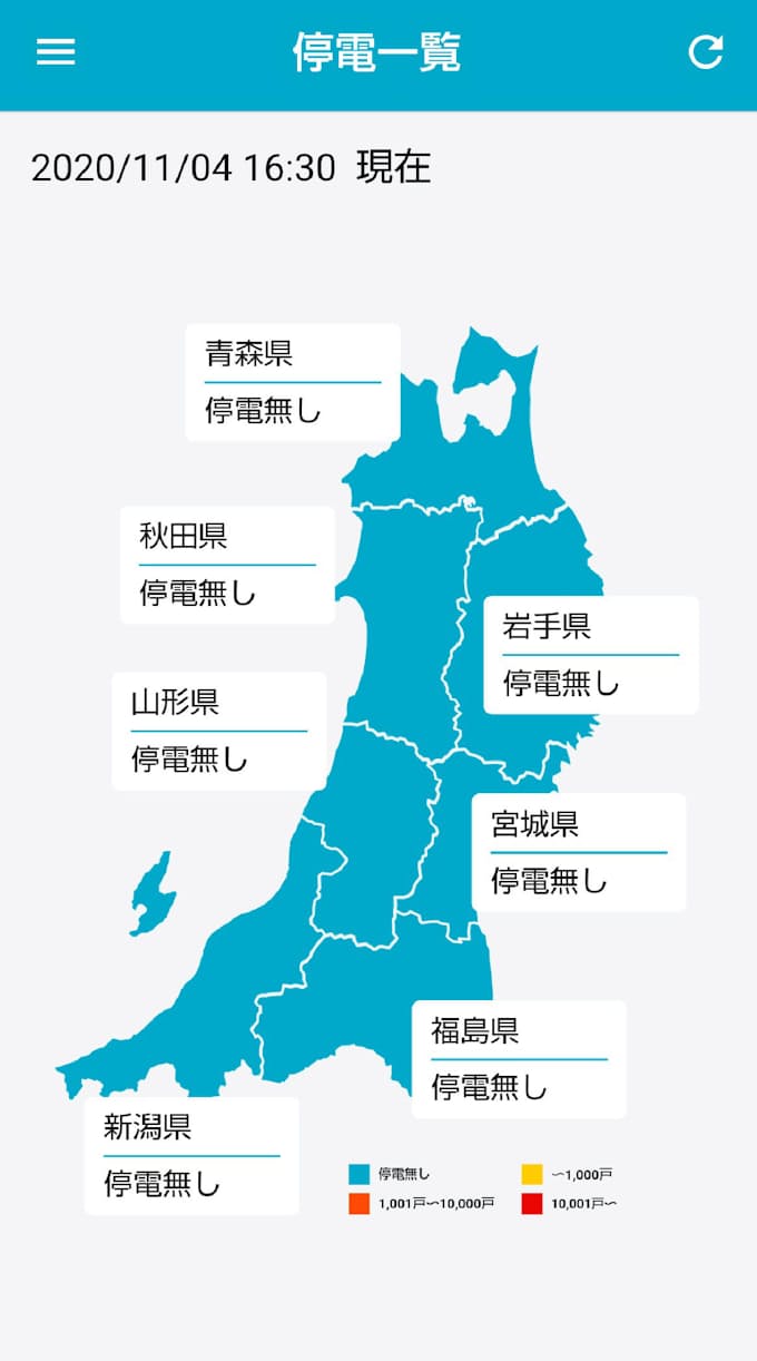 東北電力ネットワーク 停電情報のスクショ一覧 アプリノ