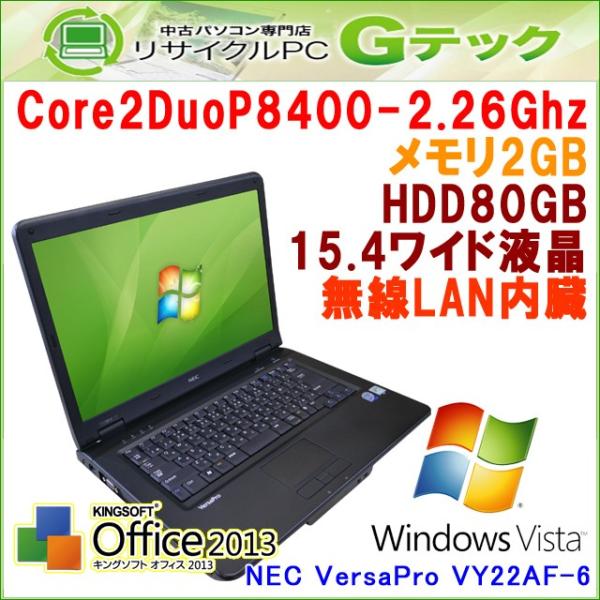 中古パソコン Windows Vista Nec Versapro Vy22af 6 無線lan内臓 Core2duo 2 26ghz メモリ2gb