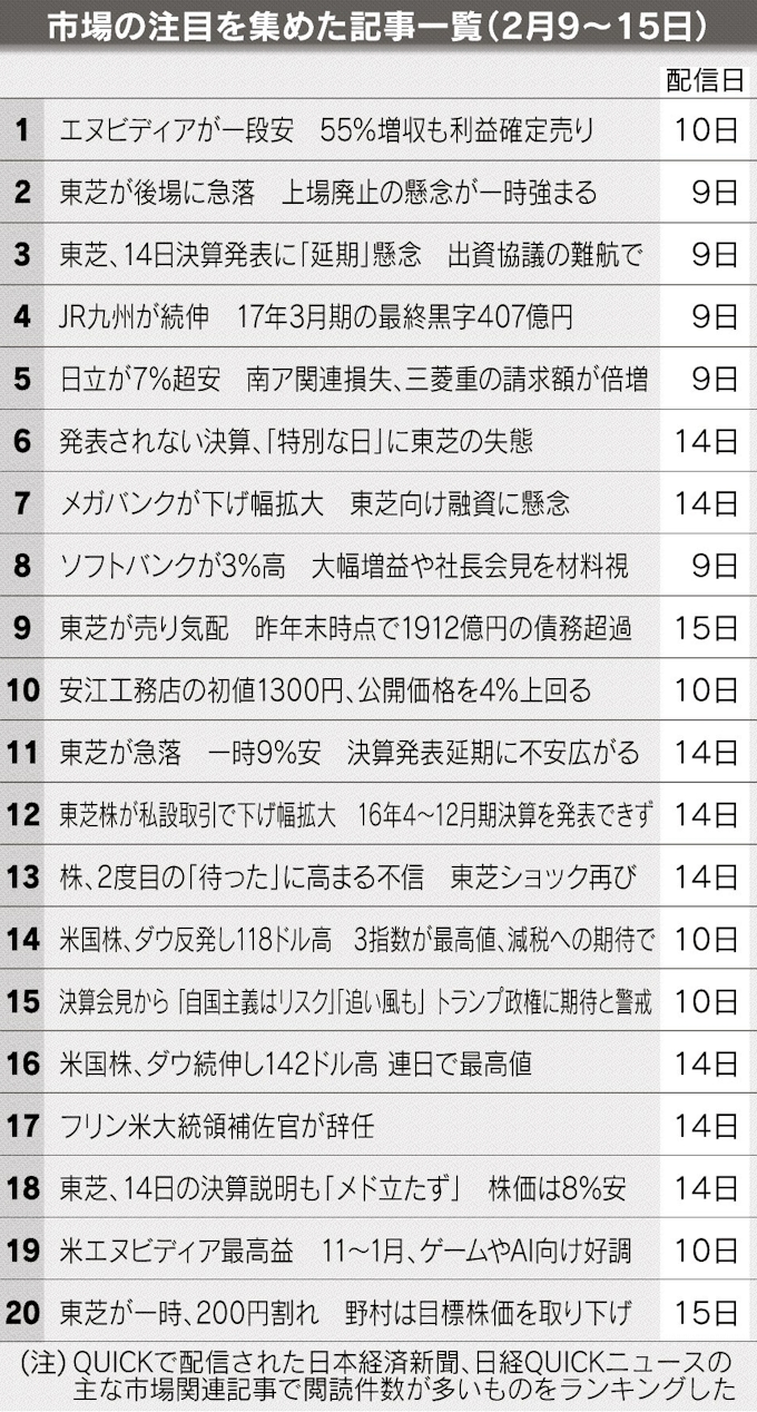 上げ下げ繰り返す日経平均 東芝の決算発表関心高く 日本経済新聞