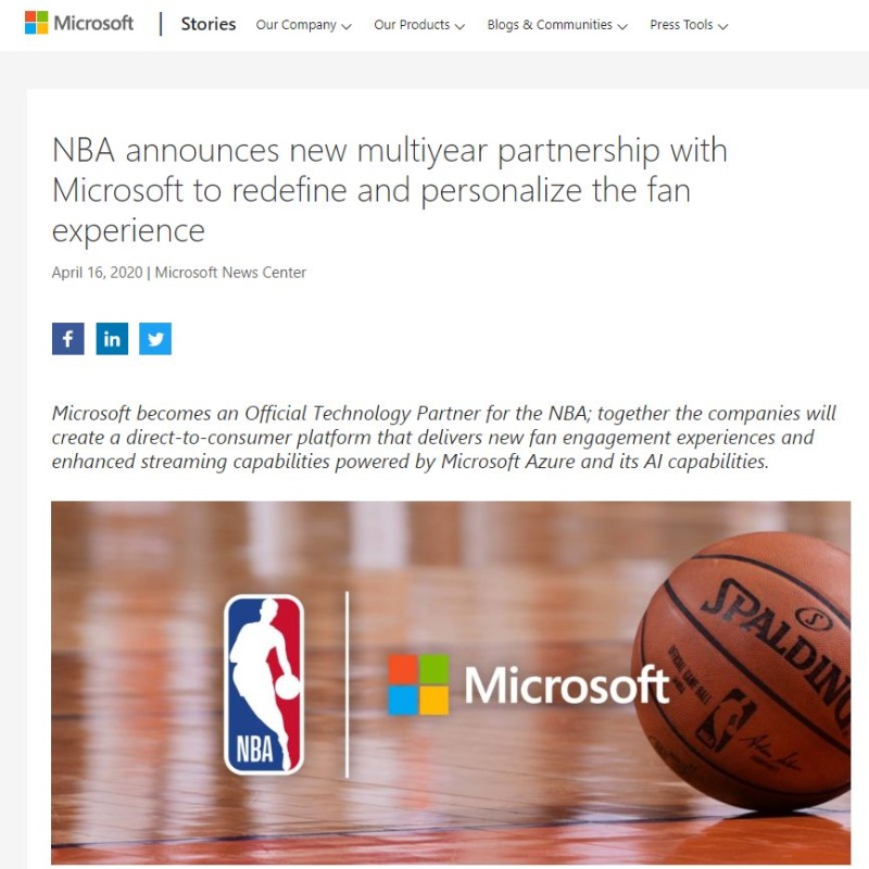 マイクロソフトがnbaとタッグ Ai クラウドでアマゾン グーグルと真っ向勝負 日経クロステック Xtech