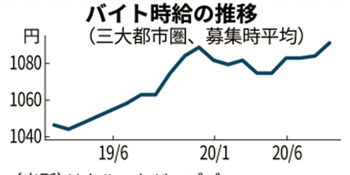 バイト時給 最高更新1091円 9月の三大都市圏 日本経済新聞