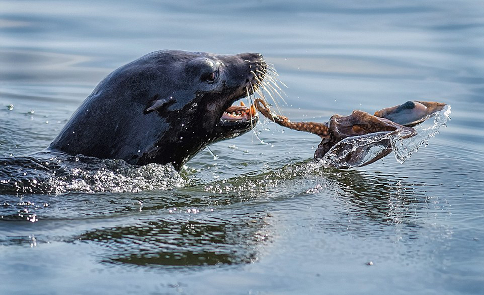 海豹大战章鱼罕见画面 水中打斗难分上下 组图 1 新闻网