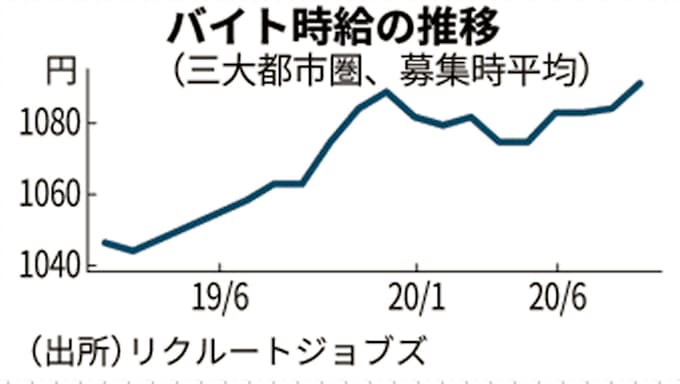 バイト時給 最高更新1091円 9月の三大都市圏 日本経済新聞