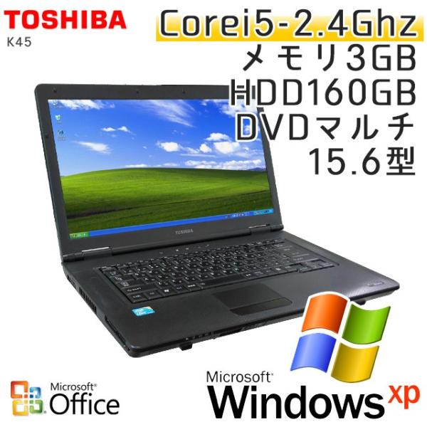 中古 ノートパソコン Microsoft Office搭載 Windows Xp 東芝 Dynabook Satellite 15 6型 K45 Hdd160gb 無線lan 3ヵ月保証 正規激安 Dvdマルチ Core メモリ3gb I5 2 4ghz
