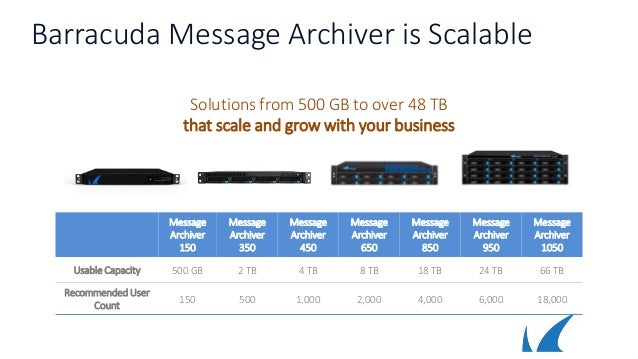 Barracuda Message Archiver is a fullyintegrated and cloudconnected archivingsolution for Exchange, Office 365, andother email services, and is availableas a hardware appliance or as a virtualsolution for private or public cloud It canmirror data to the Barracuda Cloud forsecure longterm retention and storage,or to facilitate disaster recovery. Barracuda Message Archiver is a fully integrated and cloudconnected archiving solution for Exchange, Office 365, and other email services, and is available as a hardware appliance or as a virtual solution for private or public cloud It can mirror data to the Barracuda Cloud for secure longterm retention and storage, or to facilitate disaster recovery. The Barracuda Message Archiver is ideal for organizations looking to reduce their email storage requirements and boost user productivity with mobile or desktop access to any email ever sent or received The cloudconnected appliance uses the Barracuda Cloud to move information to the cloud as a secondary tier of storage.