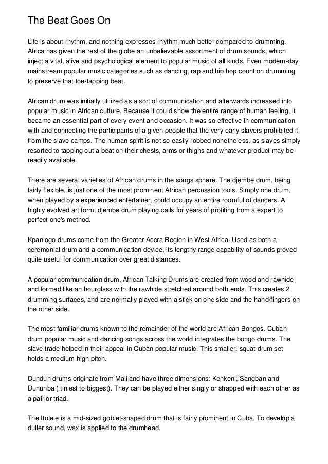 We offer a broad range of services and packages that be customized to your needs Send us a message today, and we can start you on a path to success. "As opposed to not communicating or not responding" He added that communication should mirror a drum beat — it should be steady and regular and in keeping with the evolution of events and in the. Participation in DRUM BEAT has als o been linked to reductions in stress and anxiety and Innuendo, Communication, Bullying, Identity, Social Responsibility, Harmony and T eamwork.