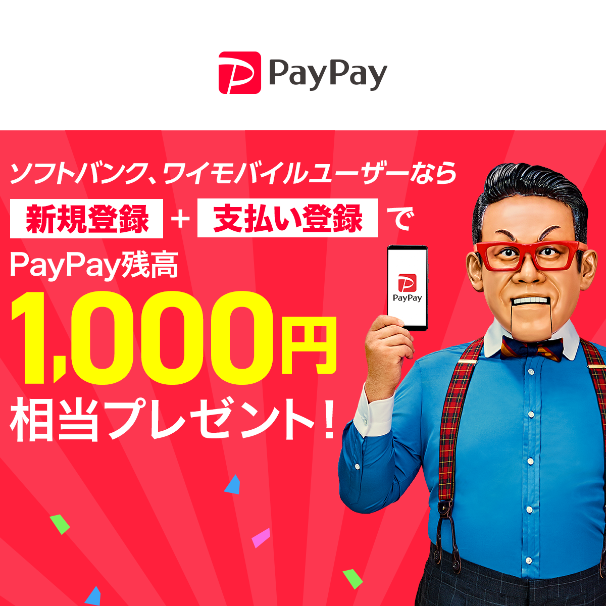ソフトバンク ワイモバイルユーザーなら2つの新規登録で 1 000円相当のpaypay残高プレゼント Paypay