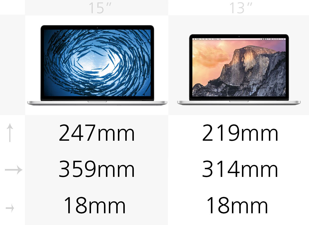 MacBook Pro (15inch, 18) 技術仕様 サイズと重量 搭載13インチMacBook Pro試作モデル、16GBのRAMと512GBのSSDを装備した26GHz 6コアIntel Core i7搭載15インチMacBook Pro試作モデルを使用し、18年6月にAppleが実施したテスト結果によります。. この初期モデルのMacBook Pro 15インチモデルからはPowerBook G4 15インチモデルに搭載されていたFireWire 800が取り除かれた。 06年4月24日 17 モニタサイズ 13インチ 15インチ. MacBook Pro 15インチと16インチ のサイズ差 MacBook Pro 15インチと16インチの本体の厚みを比較してみました。16インチ は162mmなのに対して15インチは155 mmと07mmほど薄くなっています。 MacBook Pro 15インチの方が薄い たった07mmだったら違いを感じないのでは?.