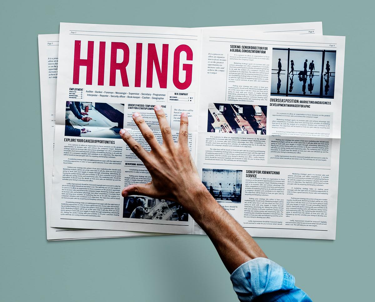 Hand Reaching To Grab Newspaper For Hiring Job Announcement