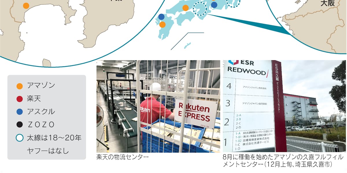 ネット通販 物流陣取り合戦 Amazon埼玉 楽天は千葉 日本経済新聞