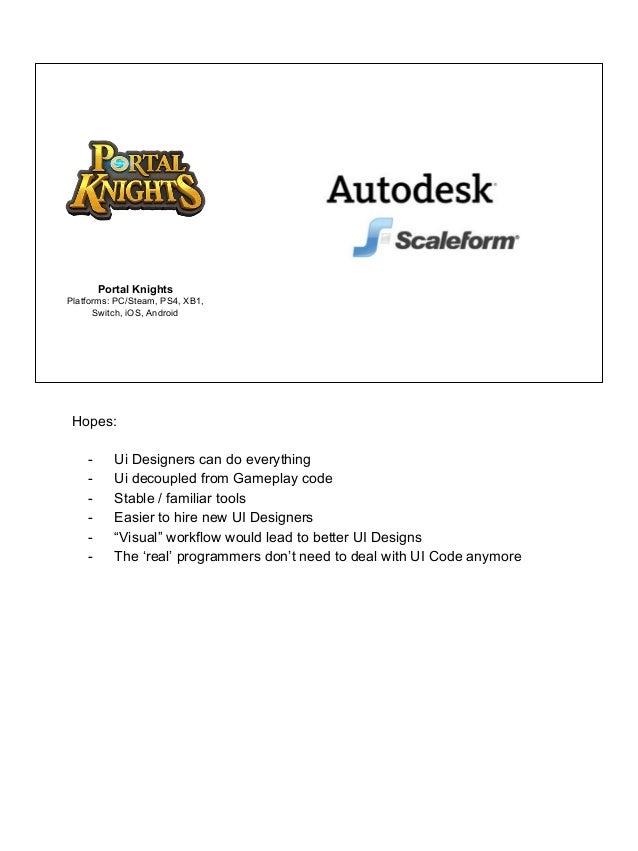119 “Software” means a computer program, or a module or component of a computer program, being either the (i) Autodesk® Scaleform® Plugin for Unity ("Unity PlugIn"), or the (ii) Scaleform SDK for a mobile platform ("Mobile SDK"), distributed or made available by Autodesk, in Object Code form, including encoded APIs. LOS ANGELES, CA – May 22, 12 Gaikai Inc, the innovative cloud gaming service, announced today that it has signed a strategic deal with Autodesk, Inc to enable the use of Autodesk® Scaleform® user interface (UI) solution within the Gaikai open cloud platform Gaikai will leverage key elements of Scaleform and Adobe® Flash® within the. « Reply #2 on October 26, 10, PM » I used flash for the UI in a project a while back, using a library called " Hikari " (I think it was specific to Ogre), digging around a bit, it looks like the dev on that is working on a new lib that would be more flexible and usable with more than Ogre http.