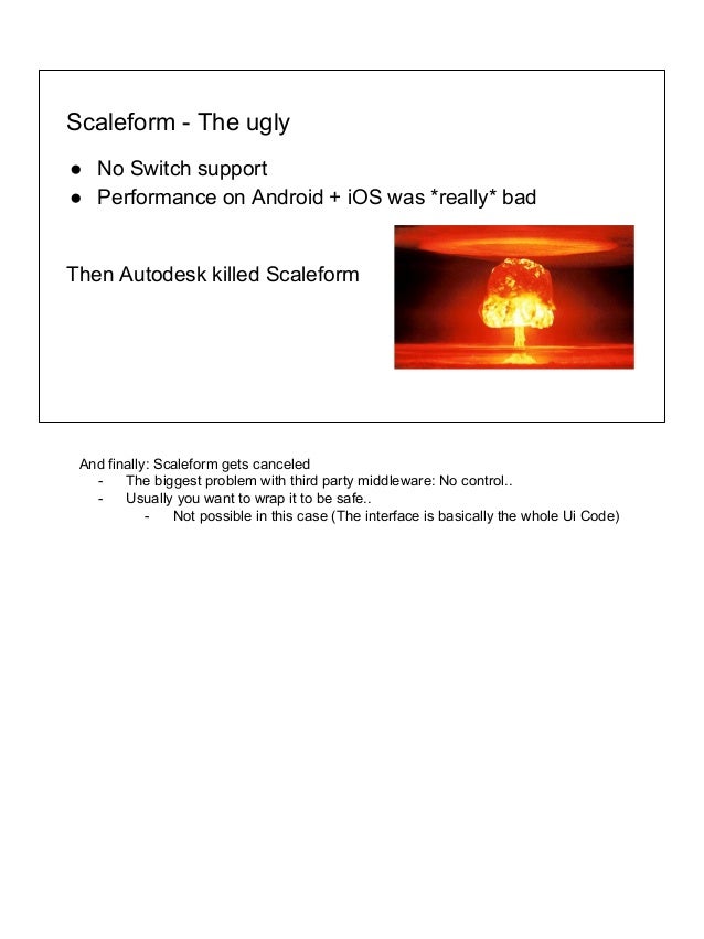 Scaleform GFx and yeah it's owned by Autodesk There have been lengthy discussions since launch about the ridiculous bloat of this game's GUI and while it was improved slightly (visually stripped down a lot ) with OMFG, like the rest of the game's optimization there is still quite a ways to go. Release Summary Autodesk a leader in 3D design, engineering and entertainment software, announced today it intends to acquire Scaleform Corporation, a privately held user interface tools and. A construction technology software company specializing in infrastructure capital planning and financials has formed a partnership with Autodesk to develop cloudbased solutions for the project.