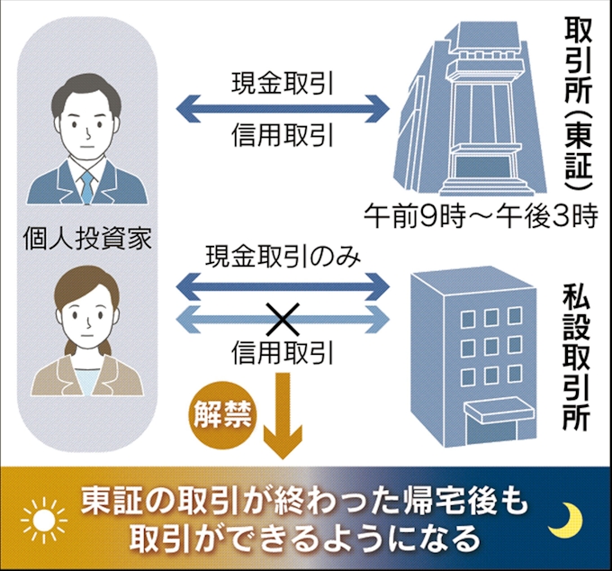 株の信用取引 夜間も 17年にも証取外で解禁 日本経済新聞